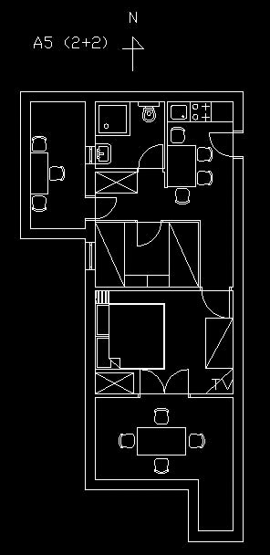 Površina: 33,60 m2 + dvije terase (12 m2 i 8 m2).